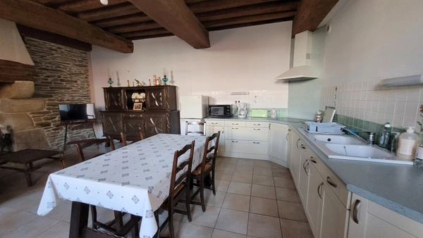 Grand salon-séjour avec cuisine ouverte et majestueuse cheminée à foyer ouvert Chambre Salle d'eau avec WC Cellier/débarras pour vos rangements